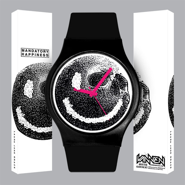 Mandatory Happiness watches also come with an exclusive sticker and select orders will be chosen at random to receive autographed packaging signed by Laura. Good luck!