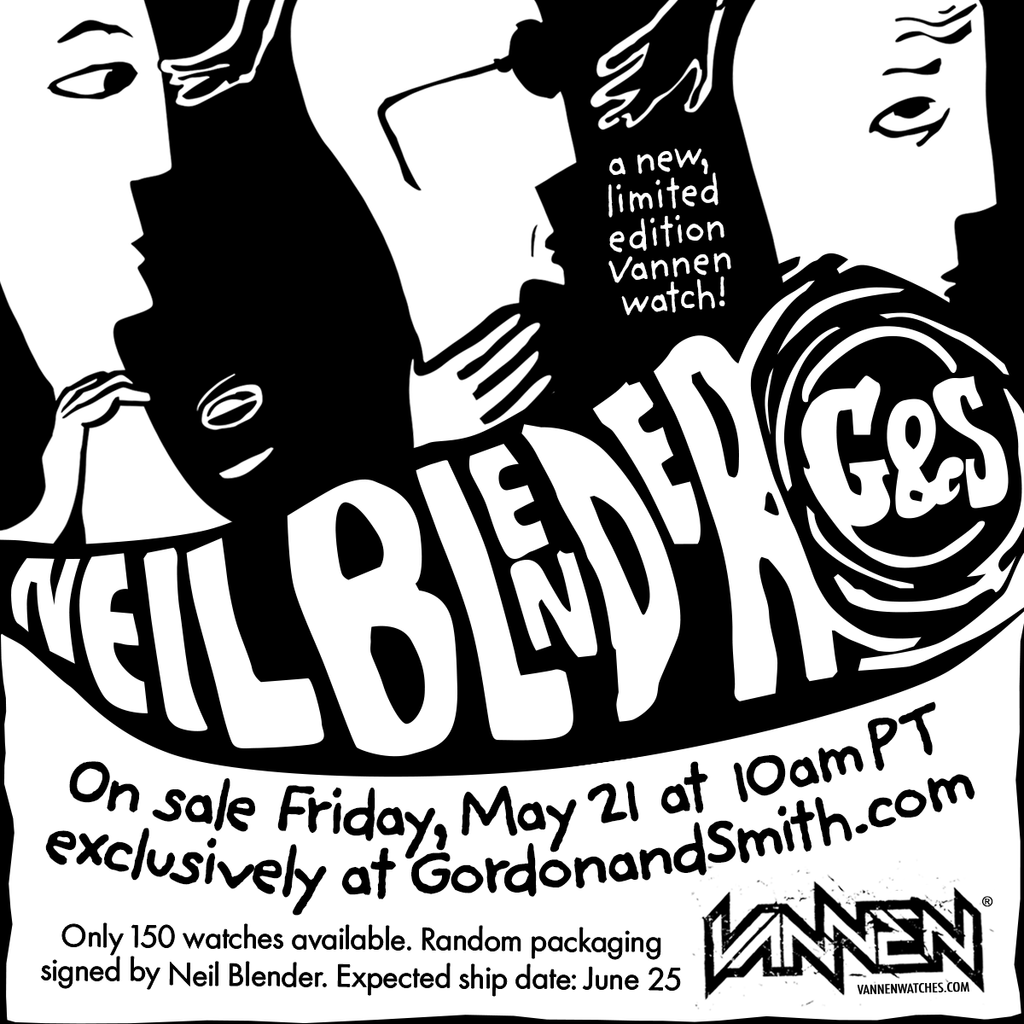 Excited to announce that Vannen has teamed up again with Gordon and Smith to release a new Neil Blender watch. "Faces" will be limited to 150 pieces and available for pre-order on Friday, May 21 at 10am PT for $65. Expected ship date June 25. As a bonus, select orders will be chosen at random to receive autographed packaging signed by Neil Blender. More info to come. Follow Vannen and G&S for updates.