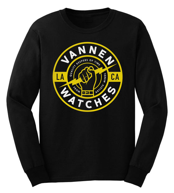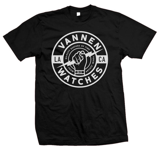 Limited edition Vannen Watches black & white "Keeper" t-shirt printed on super soft, black 50/50 Poly-Cotton fabric for a great unisex fit that feels like you've owned this shirt for years. If you are currently between sizes; we recommend that you order the next size up.