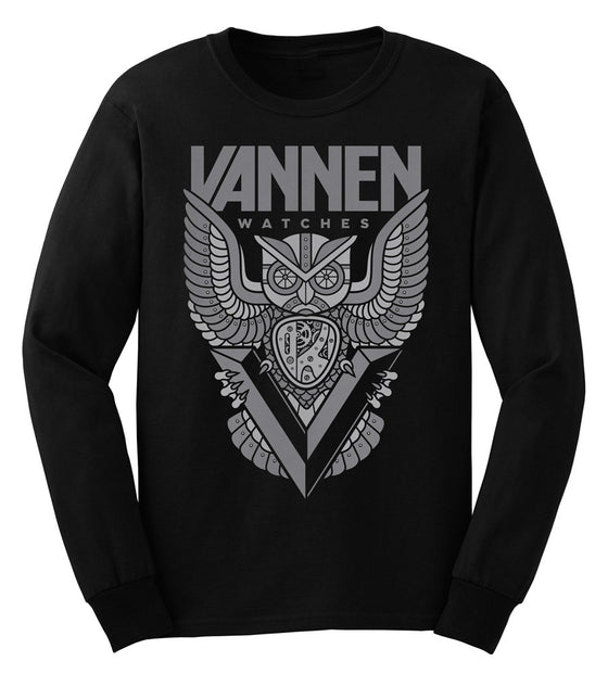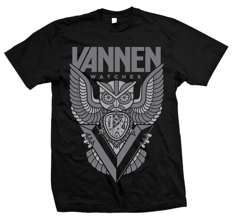 Limited edition Vannen Watches black & grey "Keeper" t-shirt printed on super soft, black 50/50 Poly-Cotton fabric for a great unisex fit that feels like you've owned this shirt for years. If you are currently between sizes; we recommend that you order the next size up.