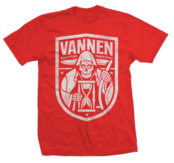This limited edition Vannen Watches red "Reaper" T-shirt is printed on 100% Cotton fabric for a great unisex fit. NOTE: If you are currently between sizes; we recommend that you order the next size up.