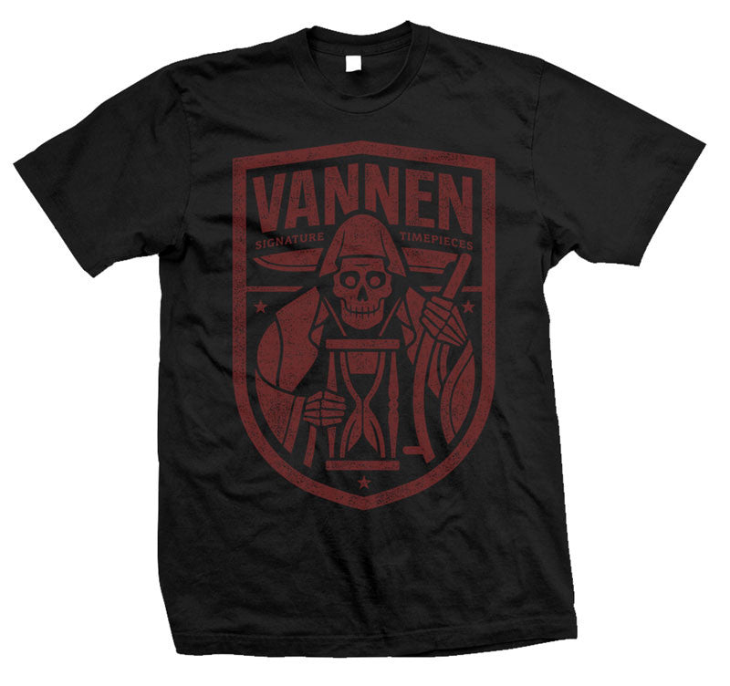 This limited edition Vannen Watches black on black "Reaper" T-shirt comes printed on super soft Poly-Cotton fabric for a great unisex fit that feels like you've owned this shirt for years. If you are currently between sizes; we recommend that you order the next size up.