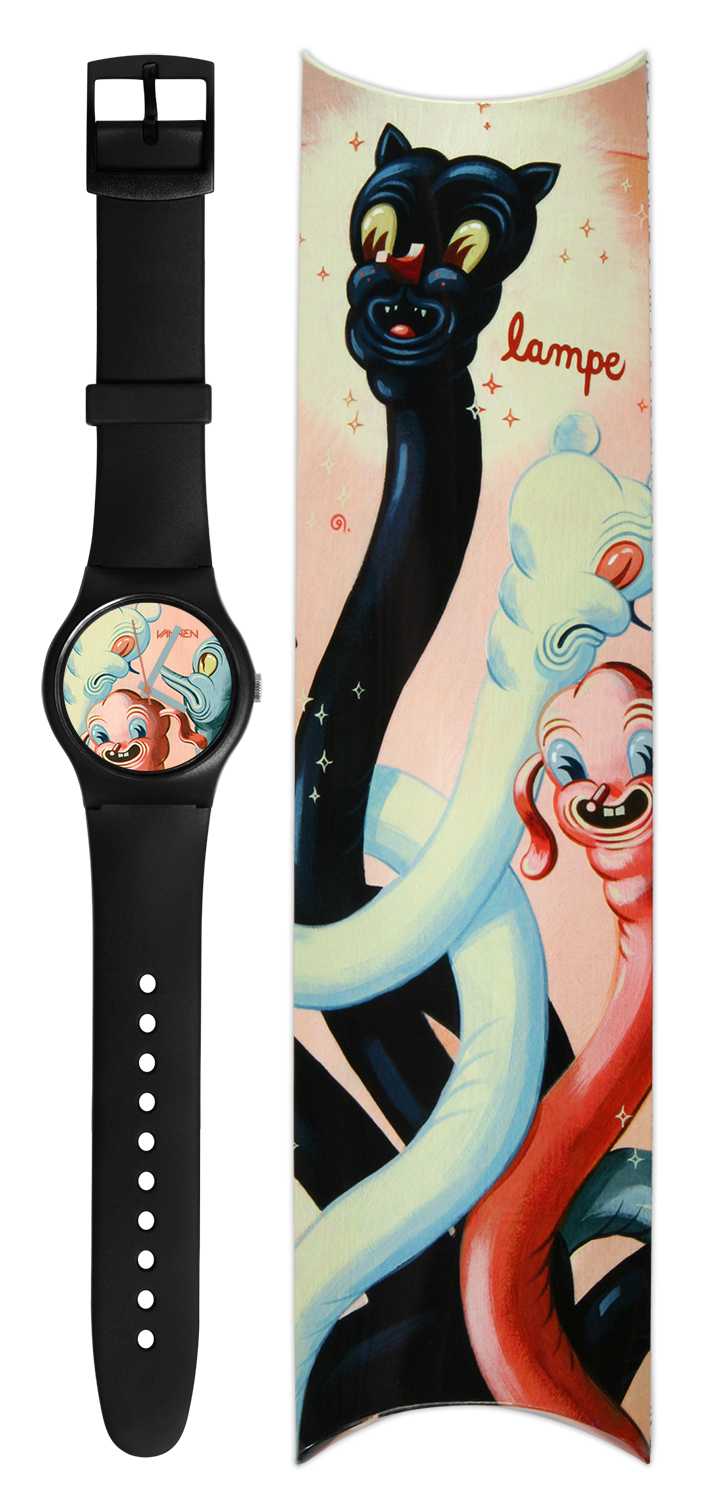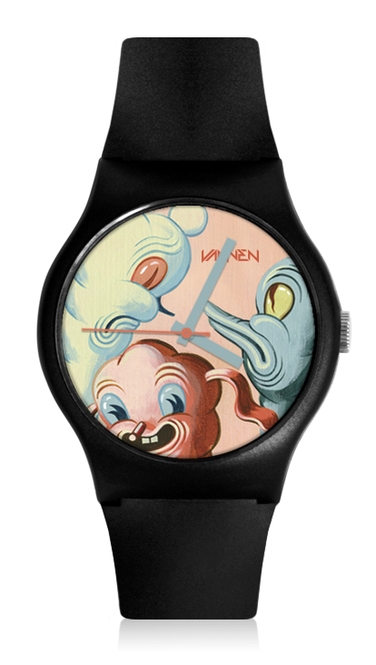 Super-limited edition Travis Lampe "Songs for Baby Hydras" black variant Vannen Artist Watch. Only 5 pieces produced! As a bonus, randomly selected orders will receive packaging signed by Travis Lampe.