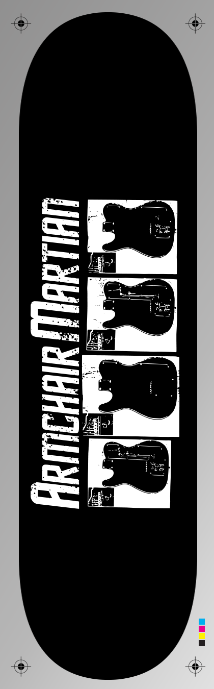 Armchair Martian heat transfer sheets measure 10.5 inches wide x 36 inches long and hold the exact same artwork featured on our Armchair Martian skateboard decks.