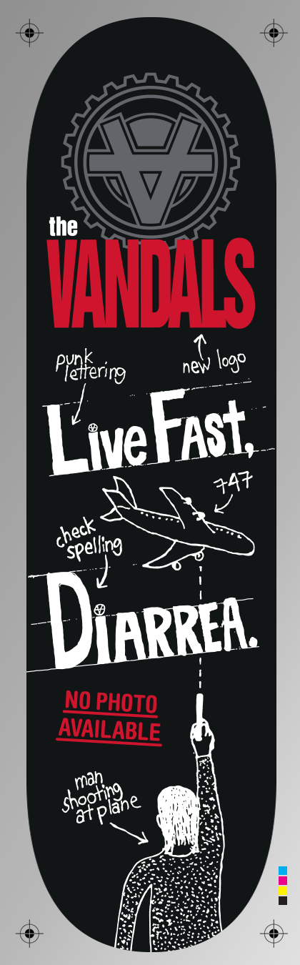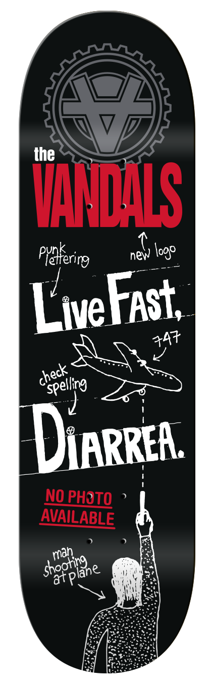 Can’t afford the shipping for a Vandals "Live Fast, Diarrhea" skateboard deck? Don't worry, you now have the option to order the heat transfer artwork instead of the board.