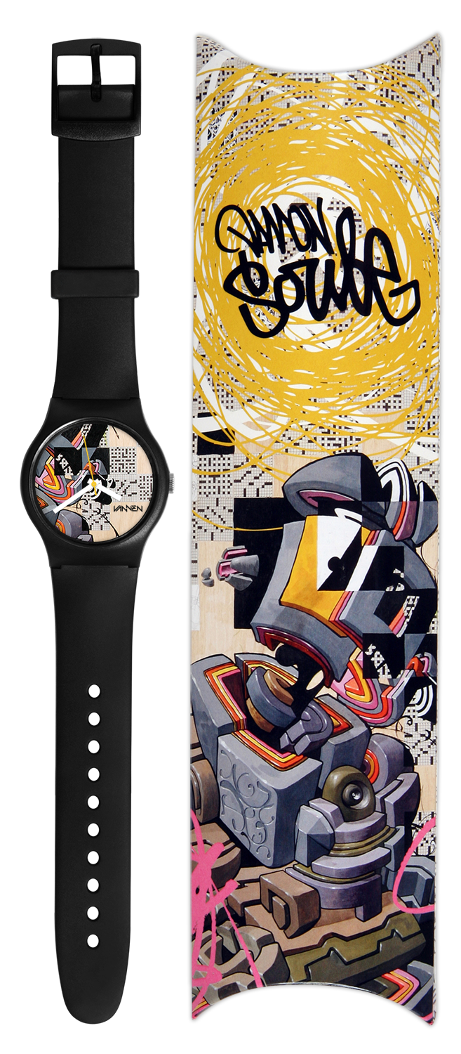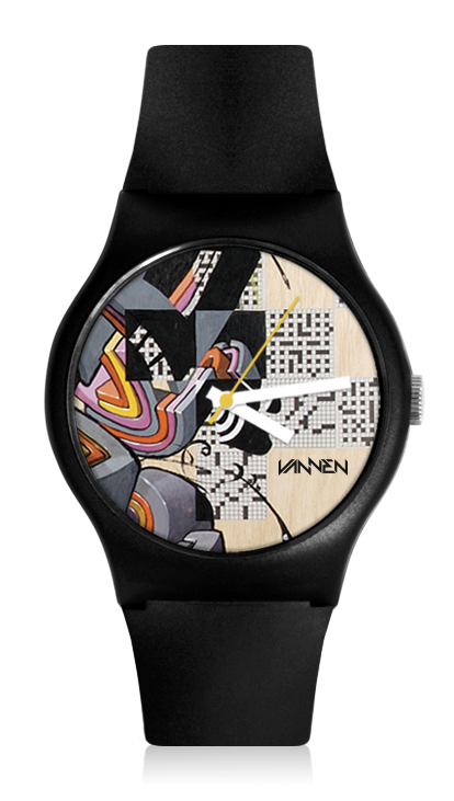 Super-limited edition Damon Soule 'Square Takes Circle' black variant Vannen Artist Watch. Only 10 pieces produced! As a bonus, randomly selected orders will receive packaging signed by Damon Soule.