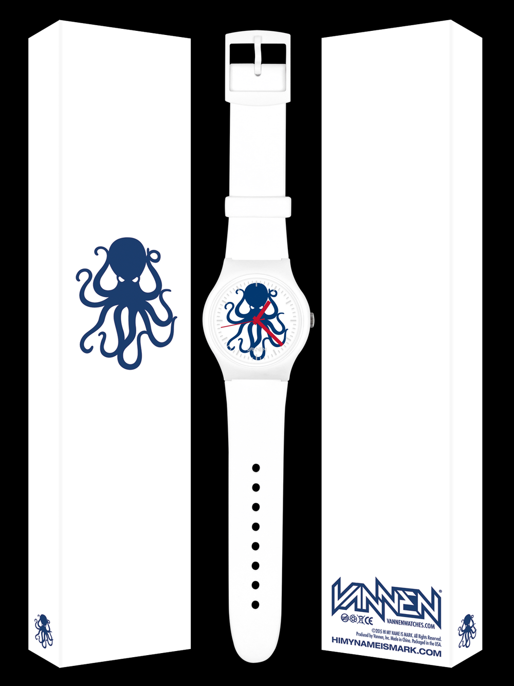 Hi My Name is Mark and Vannen have teamed up again for the special edition Winter Exclusive wristwatch. This classic, matte white watch is limited to 150 pieces and comes packaged in sleek, matte white sleeve and finished with a glossy, embossed navy blue octopus on the font. If that wasn't cool enough (pun intended) each watch also comes jam-packed in a snow-filled case.