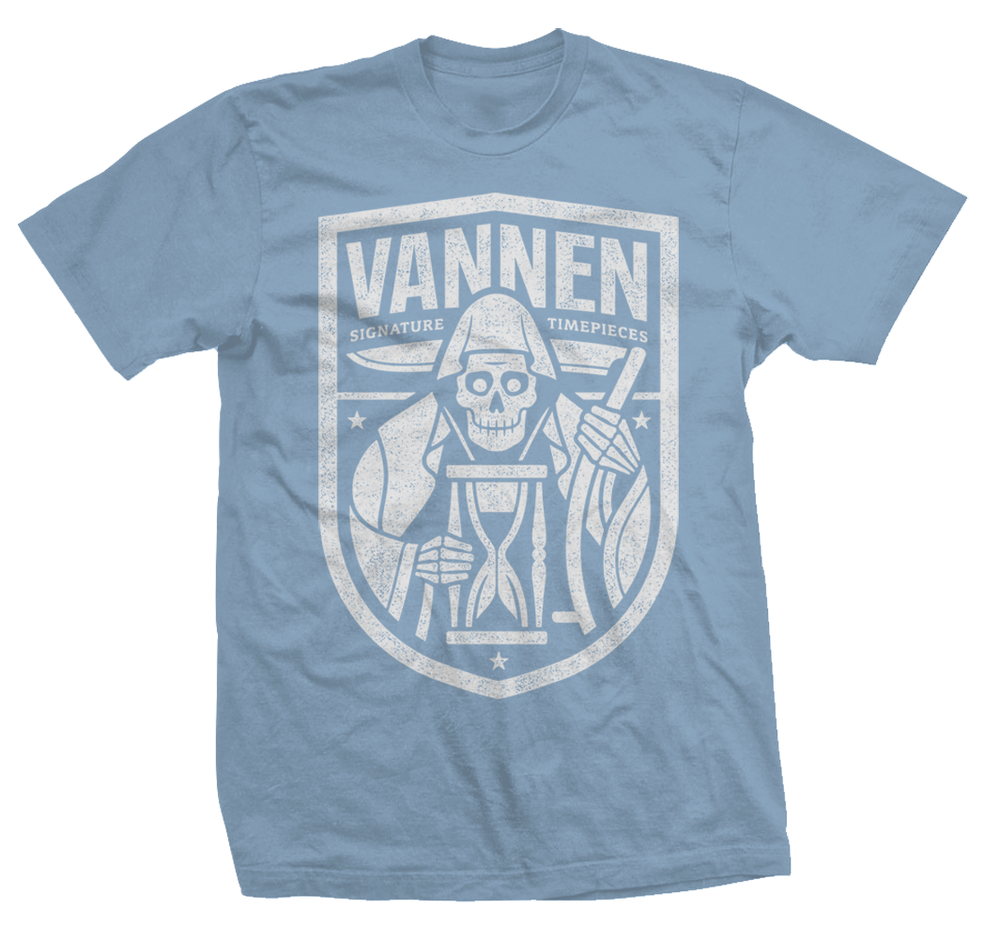 Limited edition Vannen Watches black & grey "Keeper" t-shirt printed on super soft, black 50/50 Poly-Cotton fabric for a great unisex fit that feels like you've owned this shirt for years. If you are currently between sizes; we recommend that you order the next size up.